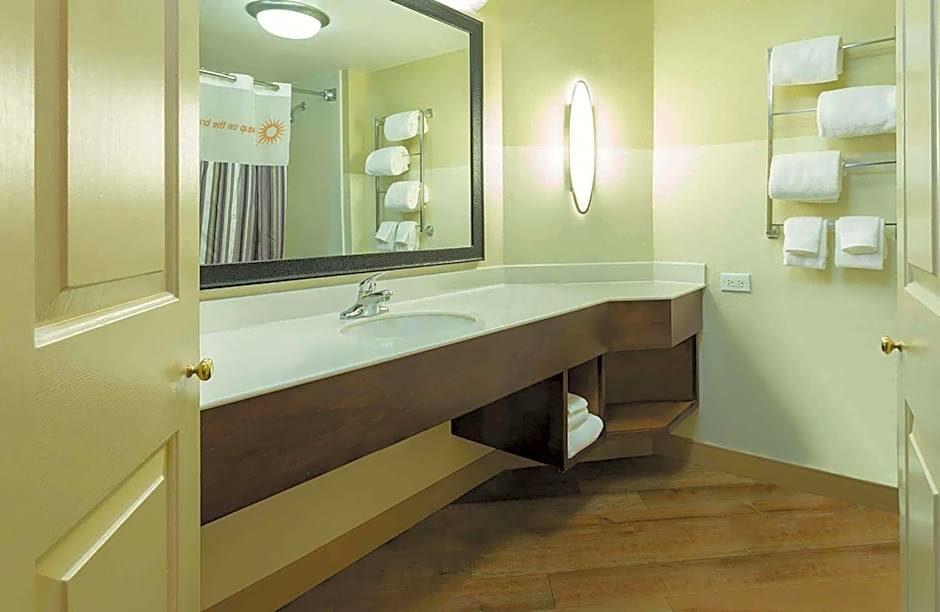 This suite has a microwave and small refrigerator. A flat-screen TV with cable channels is included. A separate furnished seating area is included.